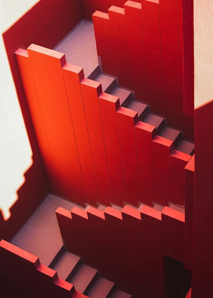 La Muralla Roja is more than a building; it’s a celebration of color and form. The bold reds and azure blues not only pay homage to the vibrant palette of Calpe but also symbolize a harmonious fusion of architectural brilliance with the natural surroundings. The project is a visual symphony, where each line, curve, and hue contributes to a holistic experience that captures the spirit of this Spanish coastal town.